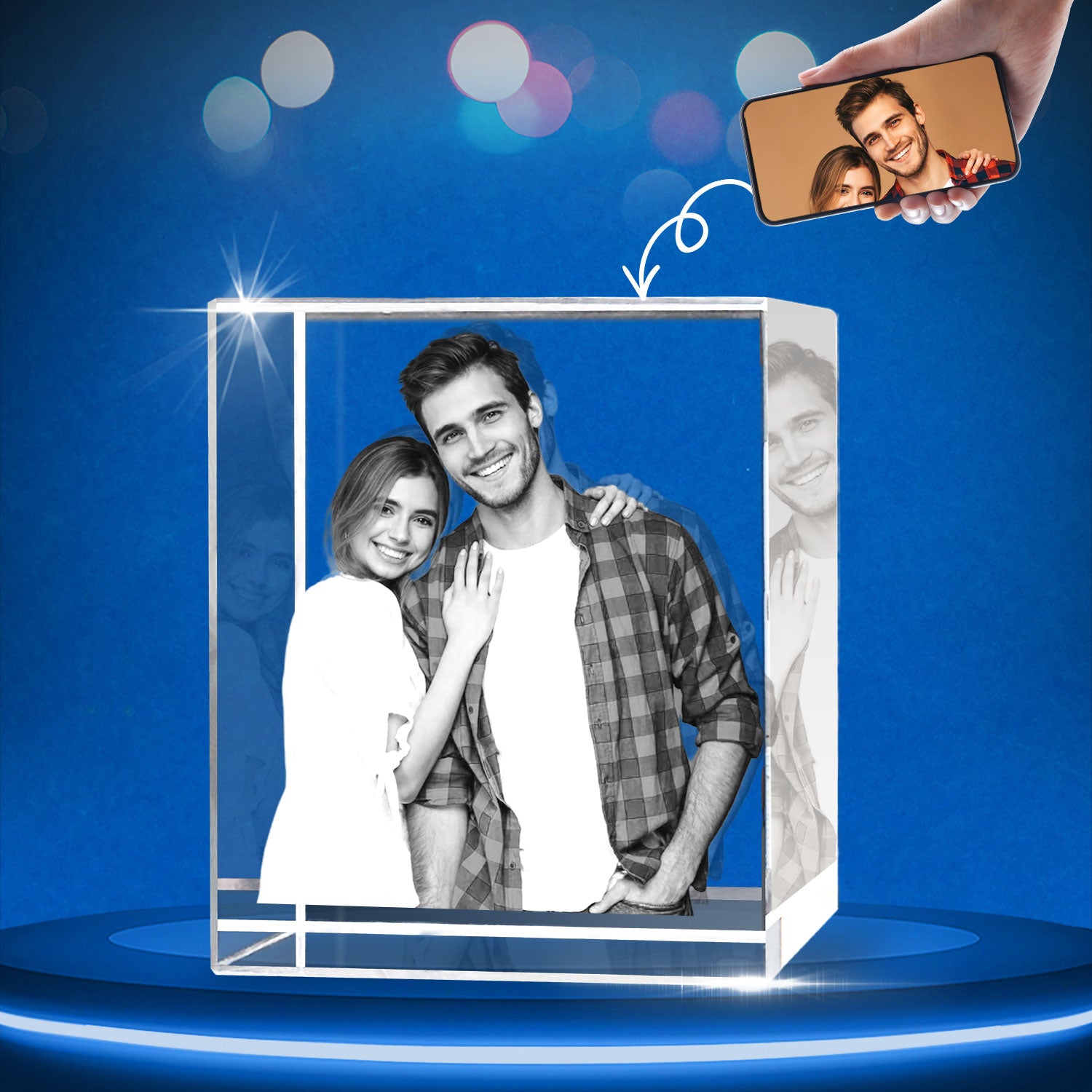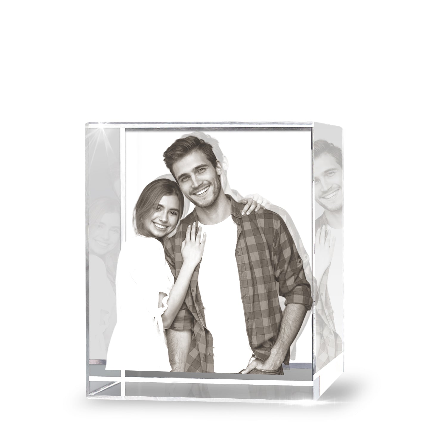 Exquisite 3D Crystal Cube: This medium-sized crystal cube is optimized for showcasing 1-3 portrait photos, offering a captivating and unique way to display your cherished memories.